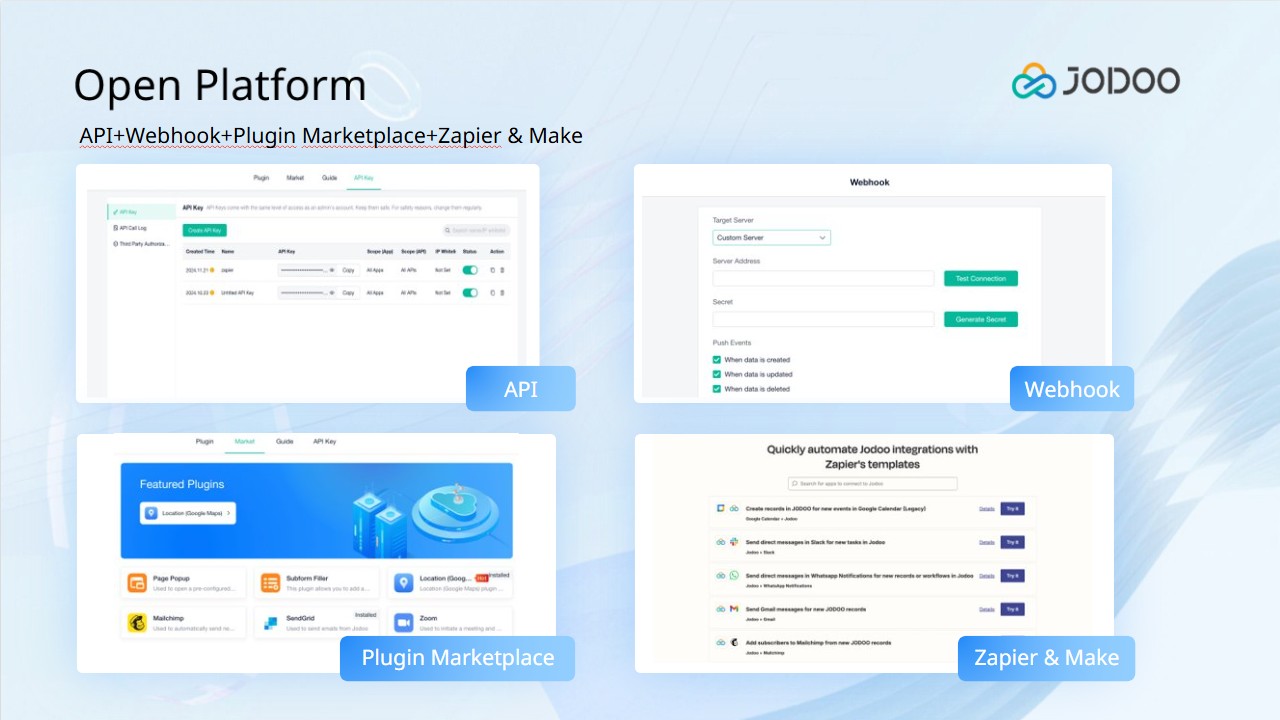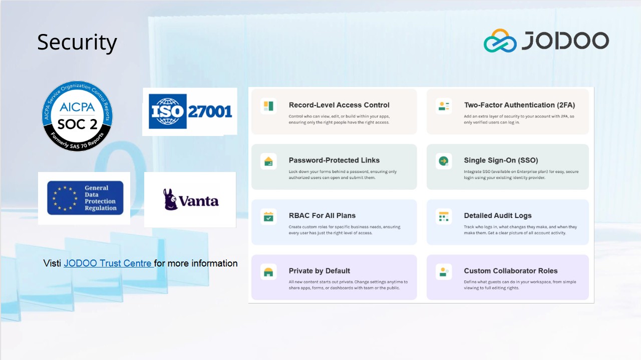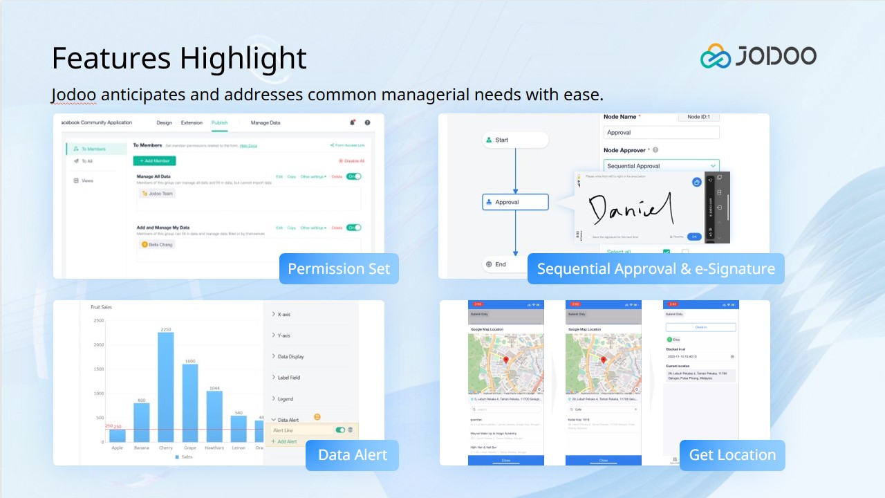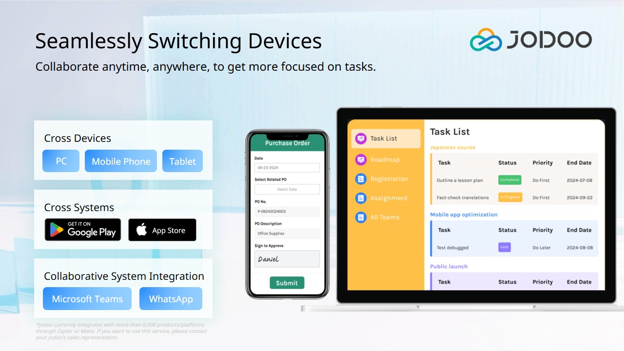 Jodoo operates as a fully cloud-based platform, giving users seamless access across multiple devices: